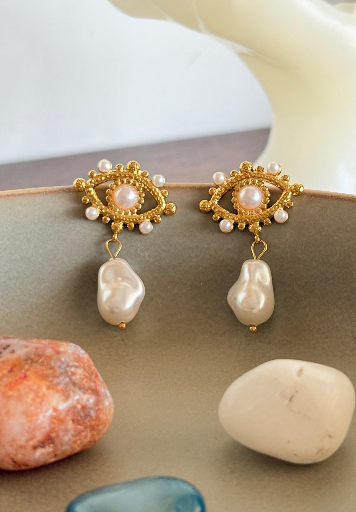 Eye Pearl Earrings - Waterproof, 18k Gold Plated
