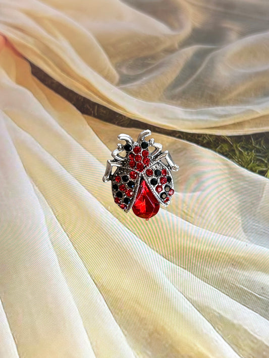 Silver Red Bug Brooch