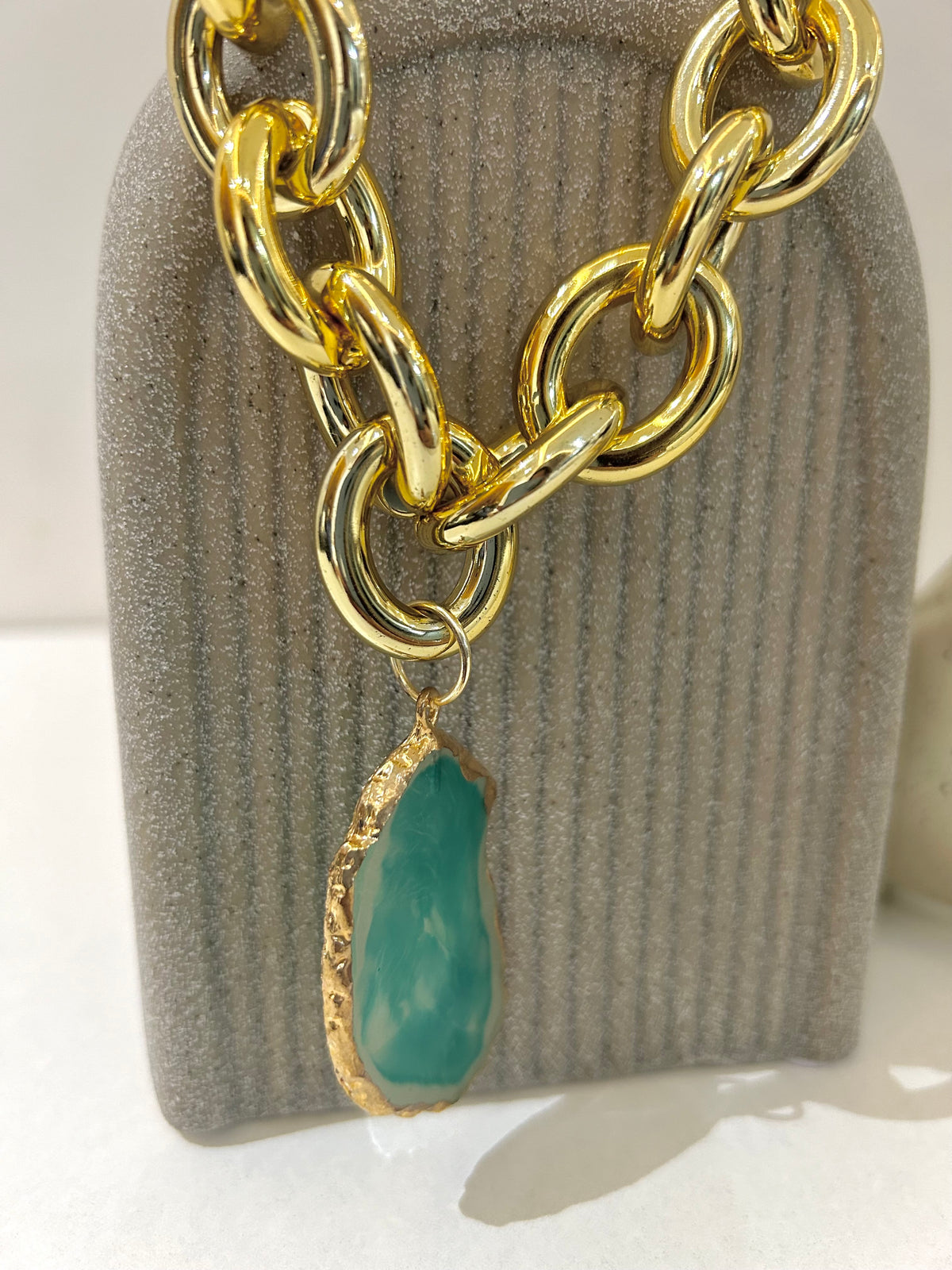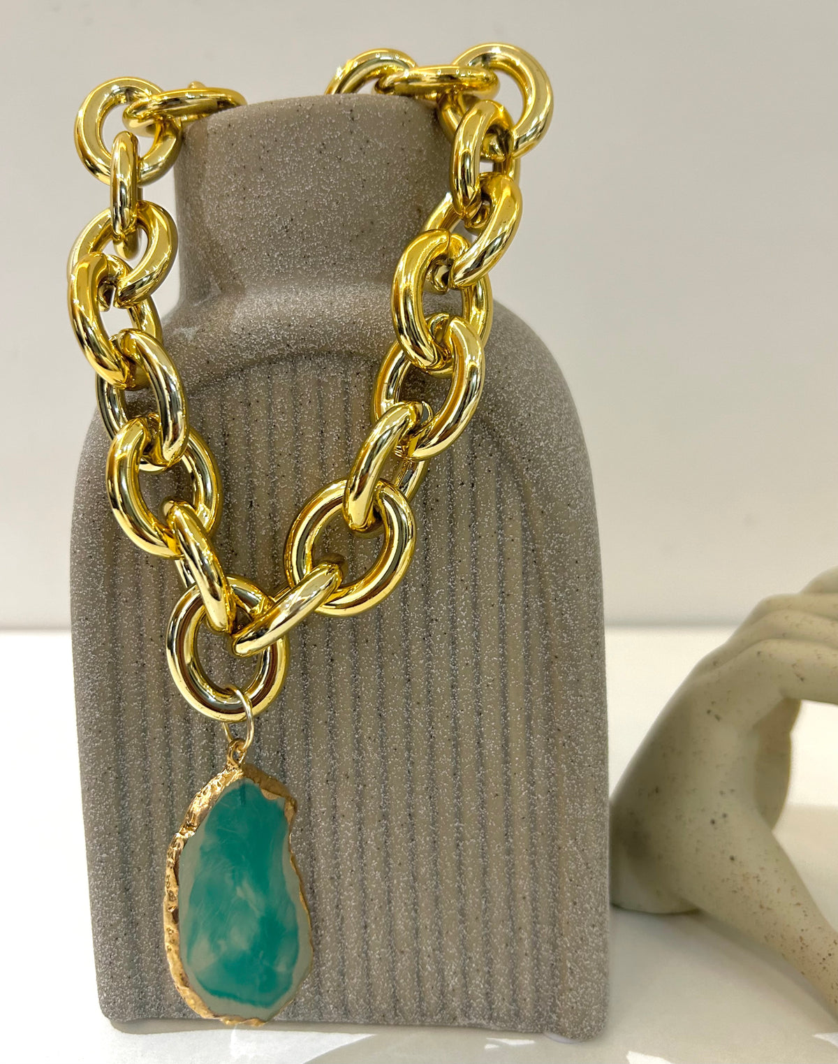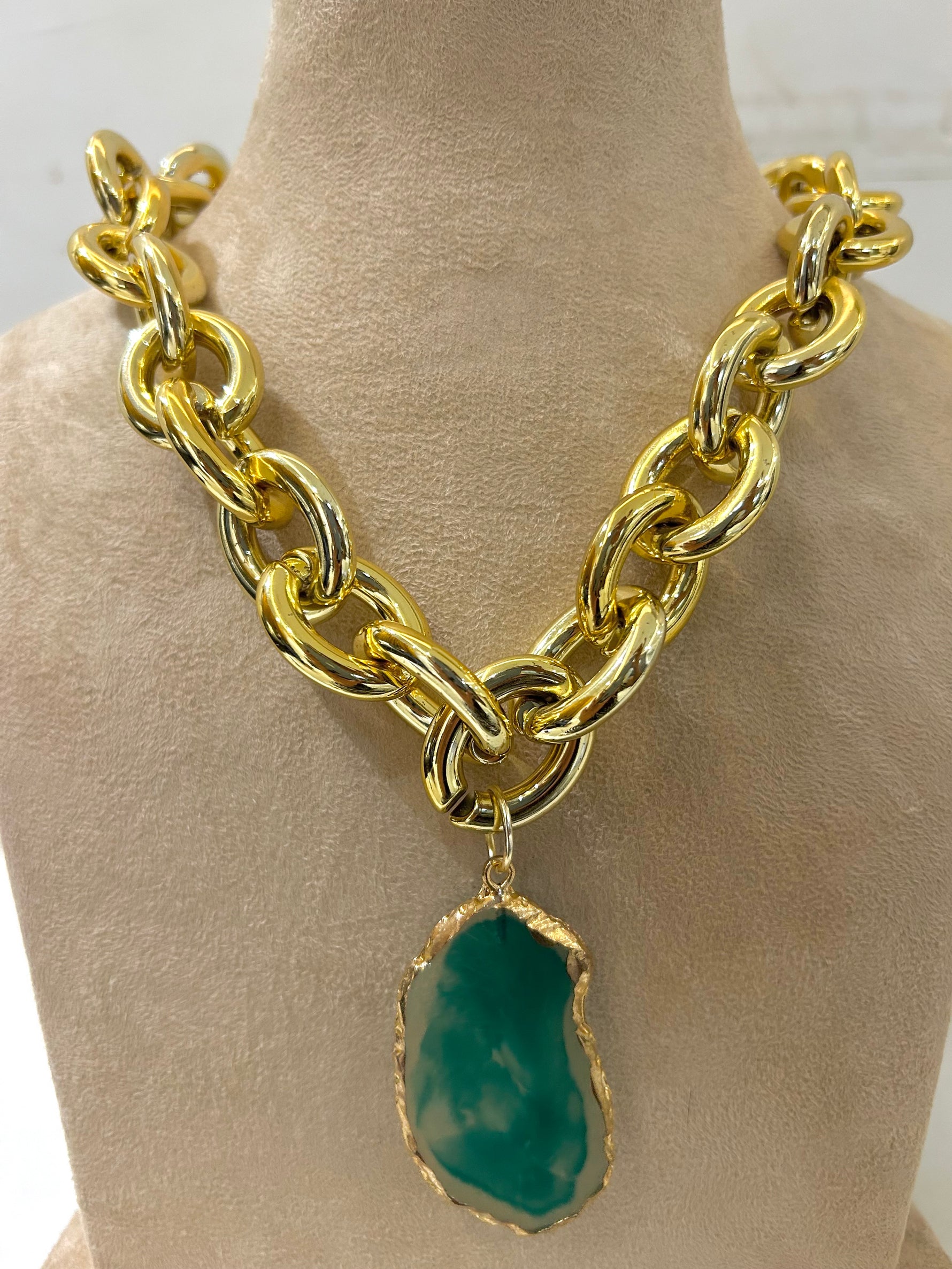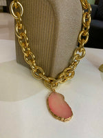 Our Creta Necklace is ready to turn heads with this bold chunky acrylic chain design, featuring a standout pendant available in two gorgeous colors: vibrant green and soft peach. Perfect for making a statement, this necklace combines modern design with a playful twist. The chunky chain adds a touch of edginess, while the sleek pendant provides the perfect pop of color. Whether you choose the fresh, earthy green or the warm, blush peach, this necklace is sure to elevate your style game.