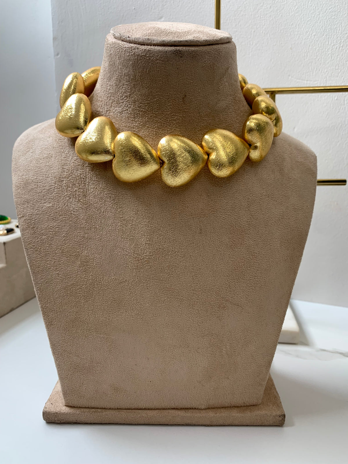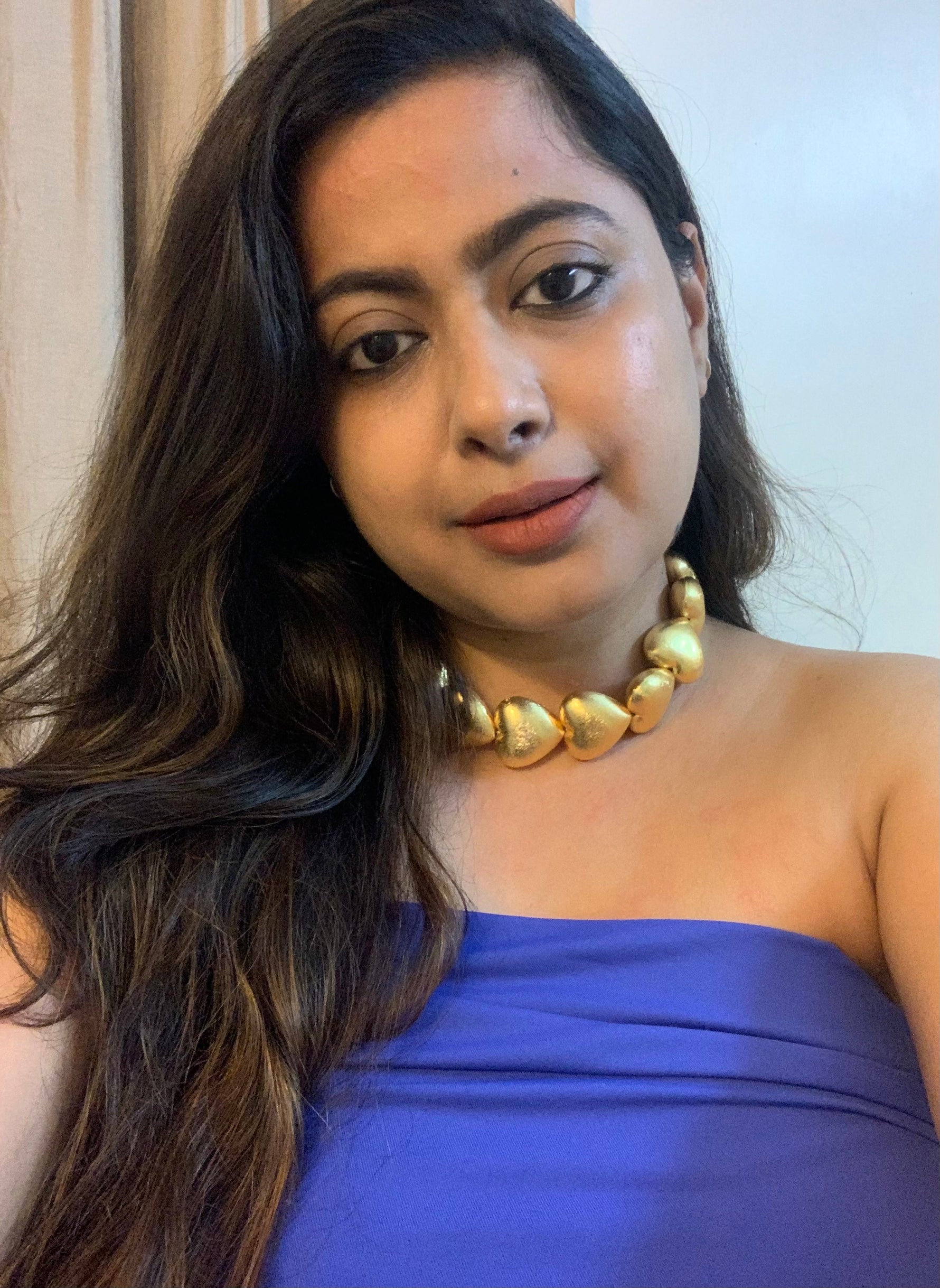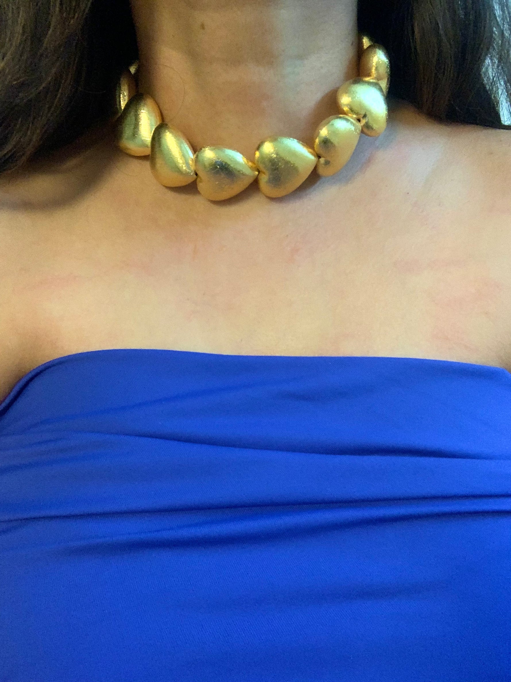 Adorn yourself with timeless elegance with this heart element brass choker, crafted in luxurious 18k gold plating. The choker features delicate heart-shaped elements that add a romantic touch to its design, creating a refined and sophisticated look. The 18k gold plating ensures a radiant and durable finish, making this choker a standout piece for any occasion. Perfect for layering or wearing alone, it effortlessly complements both casual and formal outfits, making it a versatile and cherished addition to your jewelry collection.