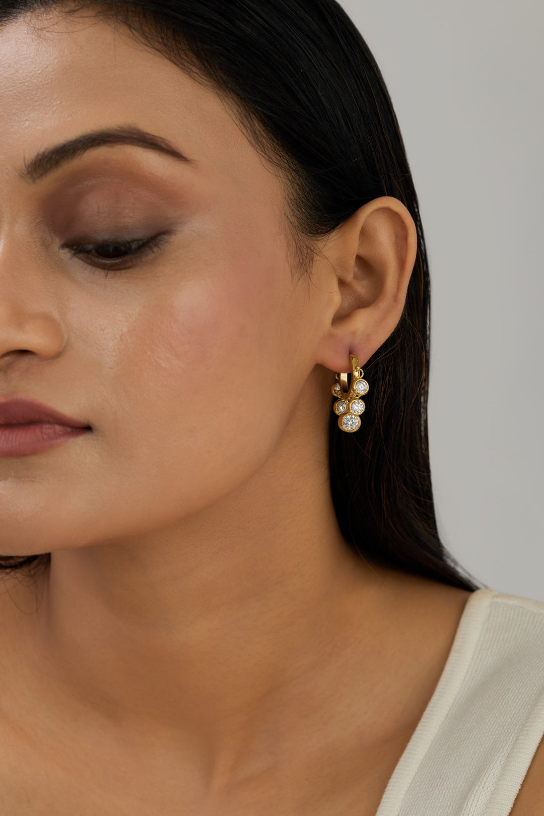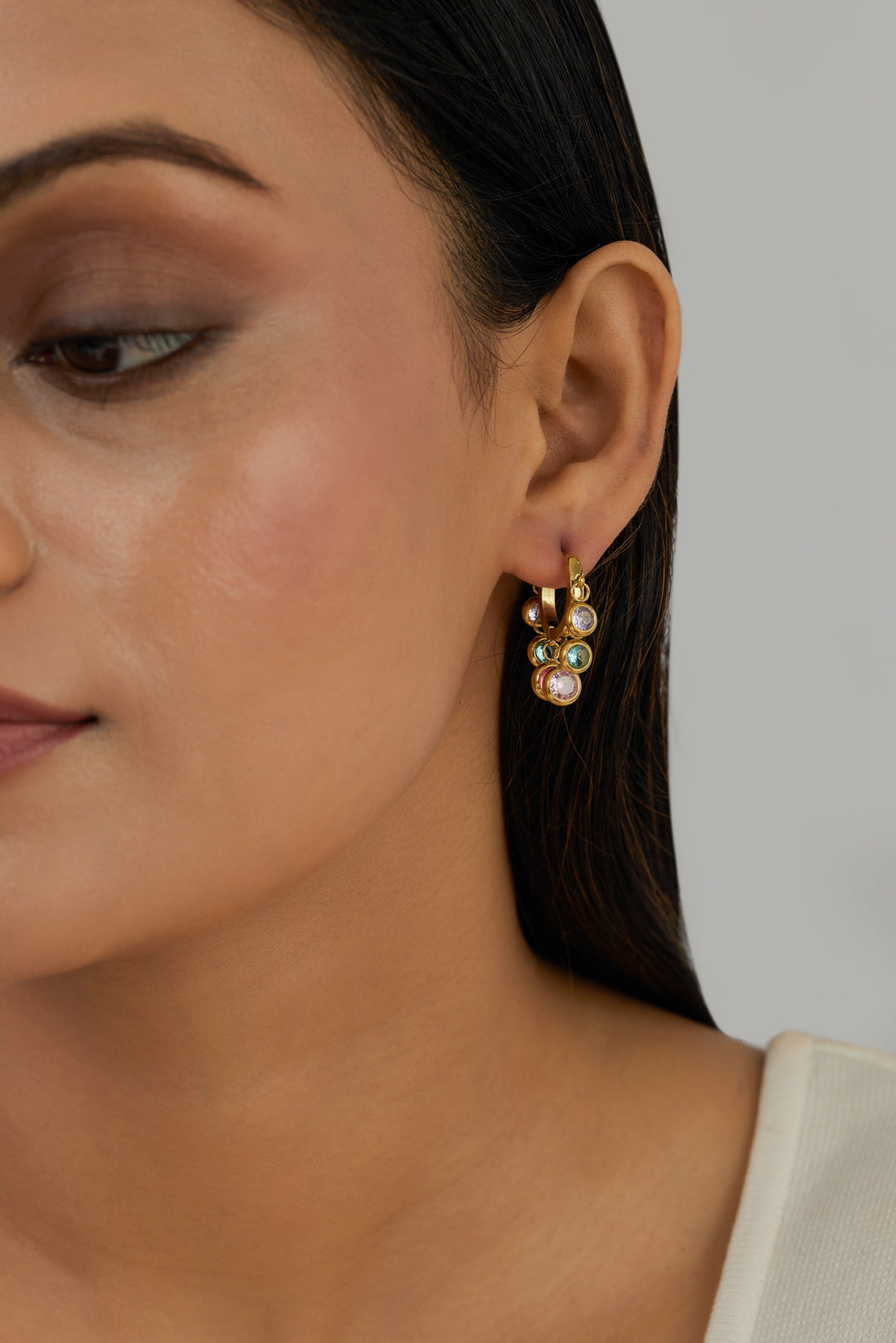 Cluster Earrings with Dangling Stones- Waterproof, 18k Gold Plated