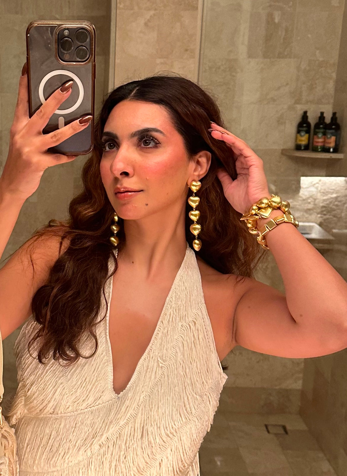 They measure 10.5 cm in length—long enough to make a gentle statement, but still sleek enough to wear on the daily. They're the perfect minimalist statement earrings in India to elevate your style without overdoing it.