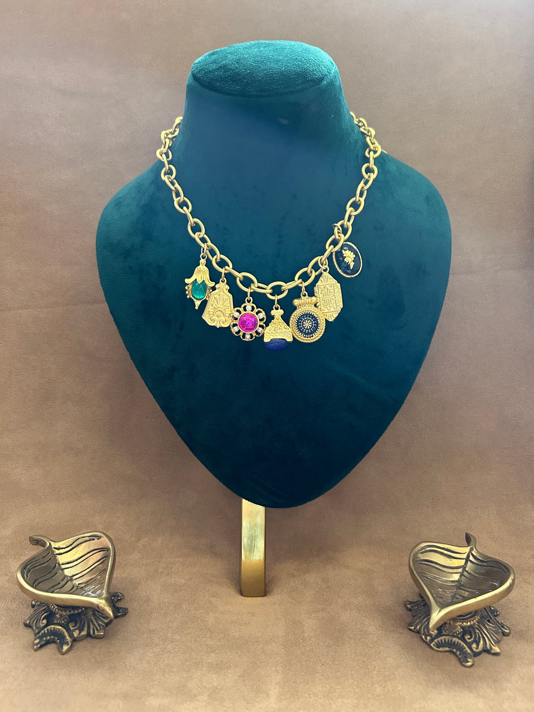 Unveil timeless elegance with Jane Necklace- a multi charm vintage necklace, where each charm is a testament to intricate craftsmanship. Adorned with delicate details and vintage-inspired designs, each charm tells its own story, adding a rich layer of sophistication and history to your look. The necklace’s vintage aesthetic is beautifully complemented by its detailed charms, making it a standout piece for any occasion. Whether layered with other jewelry or worn alone, this necklace offers a perfect blend of classic charm and artisanal artistry, enhancing any outfit with a touch of refined elegance.