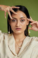Elevate your elegance with Monar Hoops - oval-shaped brass hoops, finished in anti-tarnish polish and adorned with stunning baroque pearls. The elongated oval design offers a sleek and modern silhouette, while the studded baroque pearls add a touch of organic beauty and sophistication. The anti-tarnish finish ensures lasting shine, making these earrings a durable and timeless addition to your collection. Perfect for both casual and formal occasions, these hoops combine contemporary style with classic elegance, creating a versatile accessory that enhances any look with refined charm.