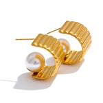 Fluted Gold Pearl Hoops- Waterproof, 18k Gold Plated