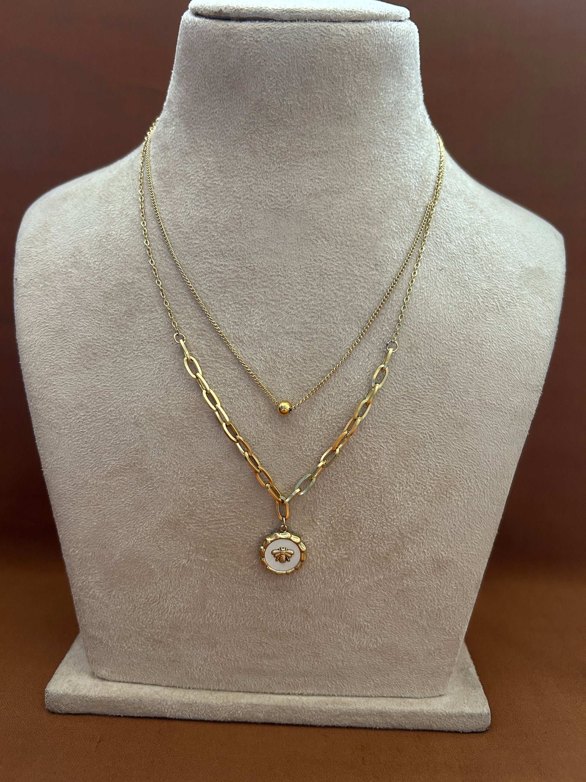 Meet your new favourite accessory: a waterproof 18k gold plated, mother of pearl bee necklace that’s as charming as it is durable. This stunning piece features a beautifully crafted bee perched on a lustrous mother of pearl pendant, capturing the essence of nature with a touch of elegance. Whether you’re lounging by the pool, enjoying a day at the beach, or just braving the elements, this necklace keeps you looking chic without compromising on style. Perfect for nature lovers and trendsetters alike, this necklace is your go-to for effortless, everyday elegance.