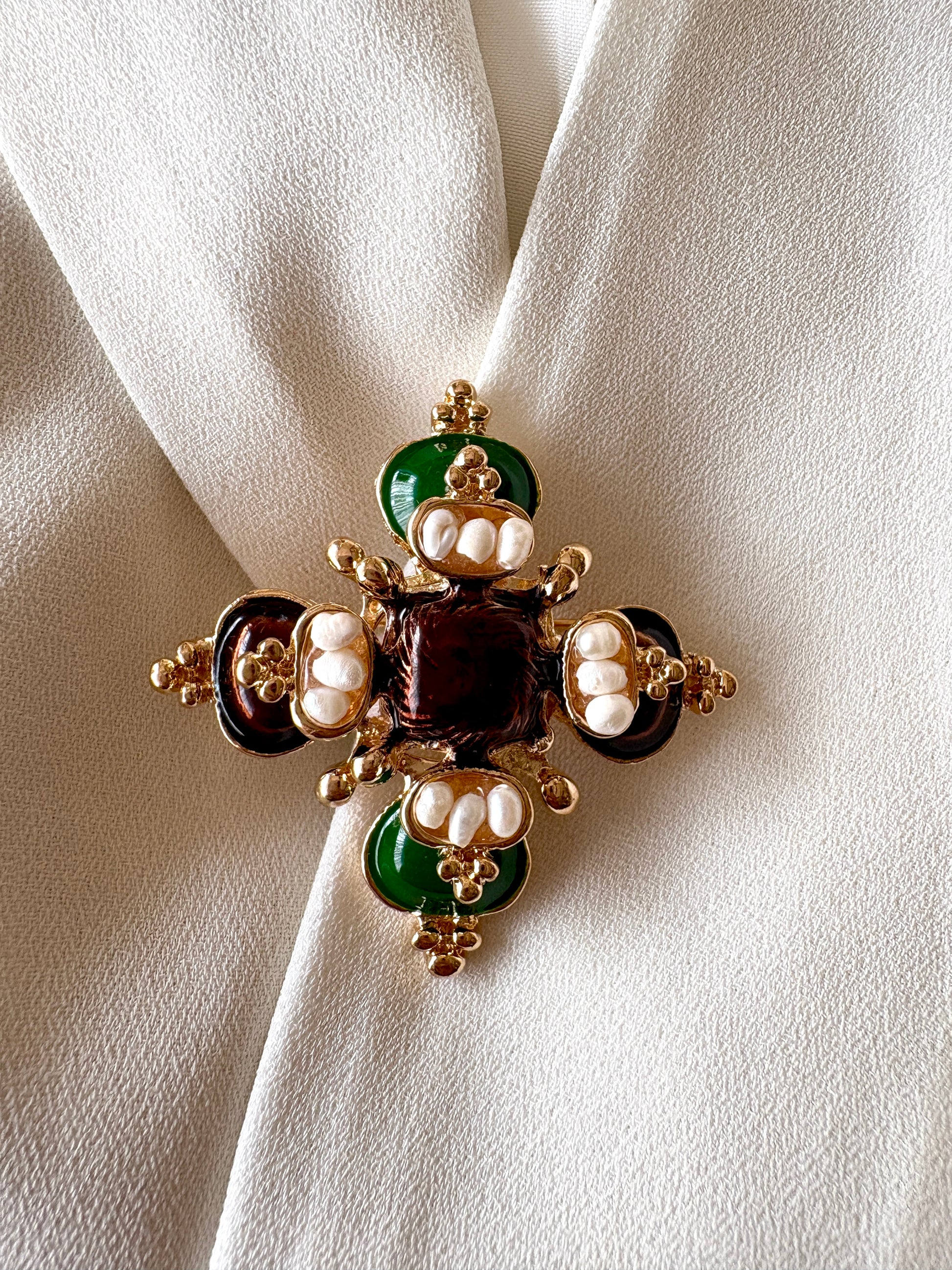 Vintage Clover Studded Brooch
